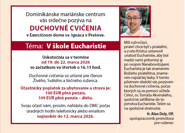 dmc2026-02-02T14:56:16+01:00Dňa 18. januára 2026 sa v kostole Najsvätejšieho Srdca Ježišovho vo Vyšnej Hutke, ktorá je filiálkou farnosti Košice-Krásna konala duchovná obnova ružencového bratstva pri príležitosti 130. výročia jeho založenia. Aj keď je táto filiálka čo sa týka počtu malou, keďže obec má približne 500 obyvateľov, ďakujeme naším predkom za založenie [...]