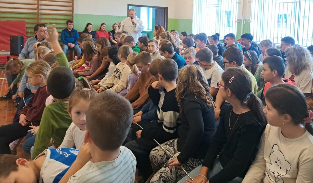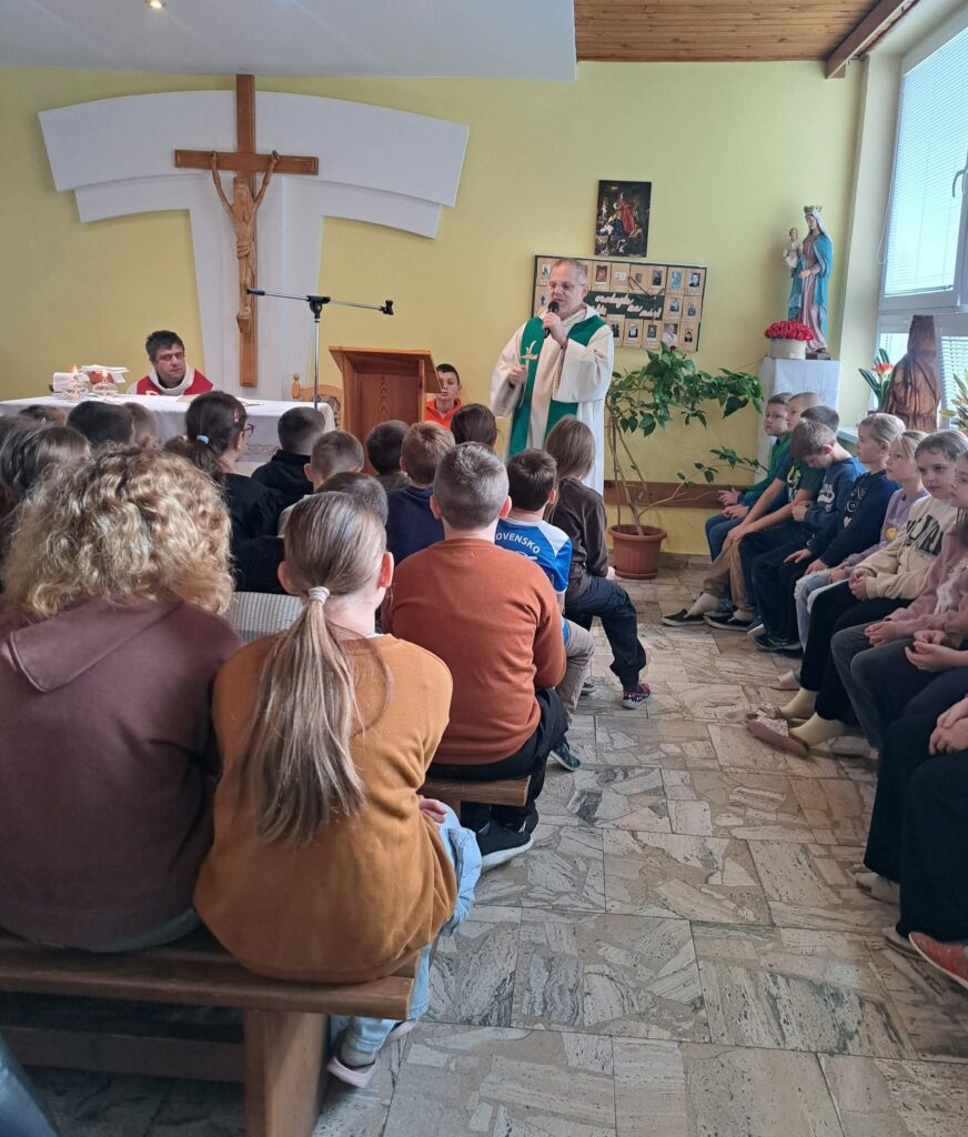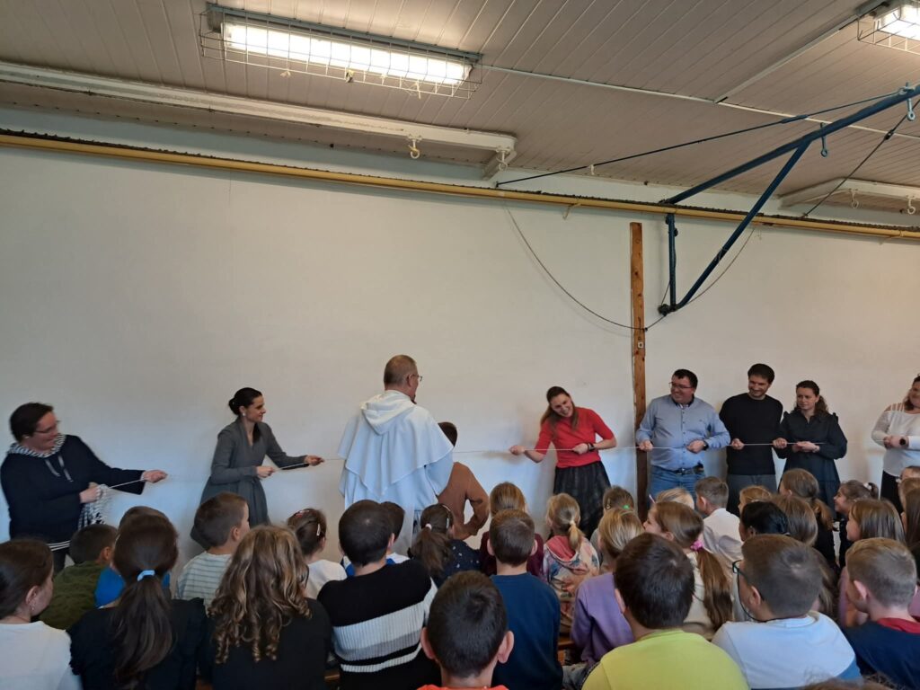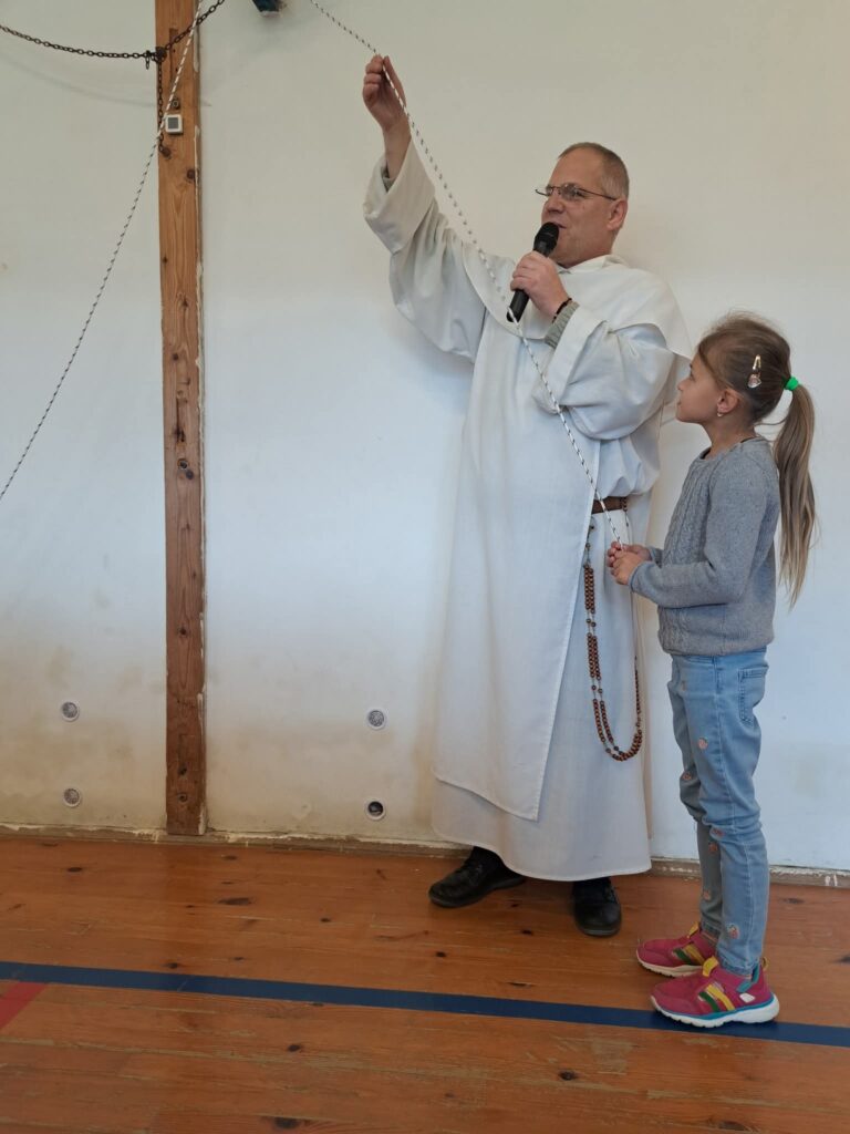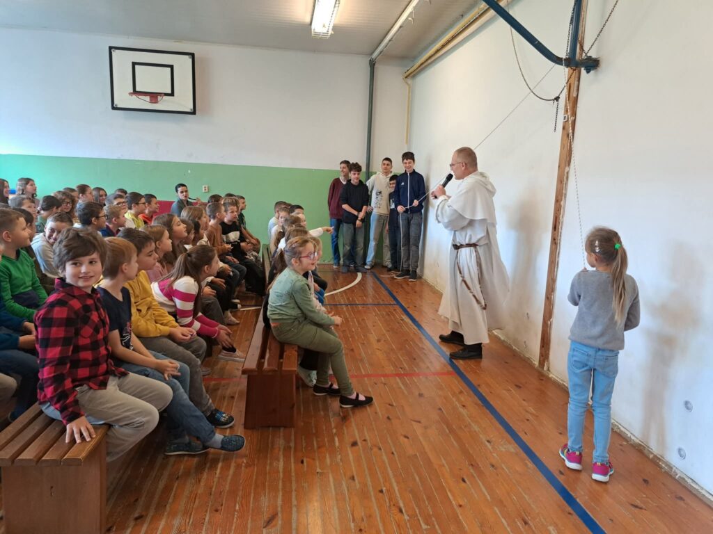 V ružencovom mesiaci október (29. októbra) medzi nás zavítal hosť – dominikánsky kňaz, páter Matej Š., OP. Prišiel nám porozprávať o modlitbe a jej dôležitosti v každodennom živote. Svoje rozprávanie obohatil pôsobivým príkladom s lanom, na ktorom deťom ukázal, že modlitba je ako pevné spojenie medzi človekom a Bohom – čím je pevnejšia a úprimnejšia, tým lepšie unesie všetky ťažkosti.