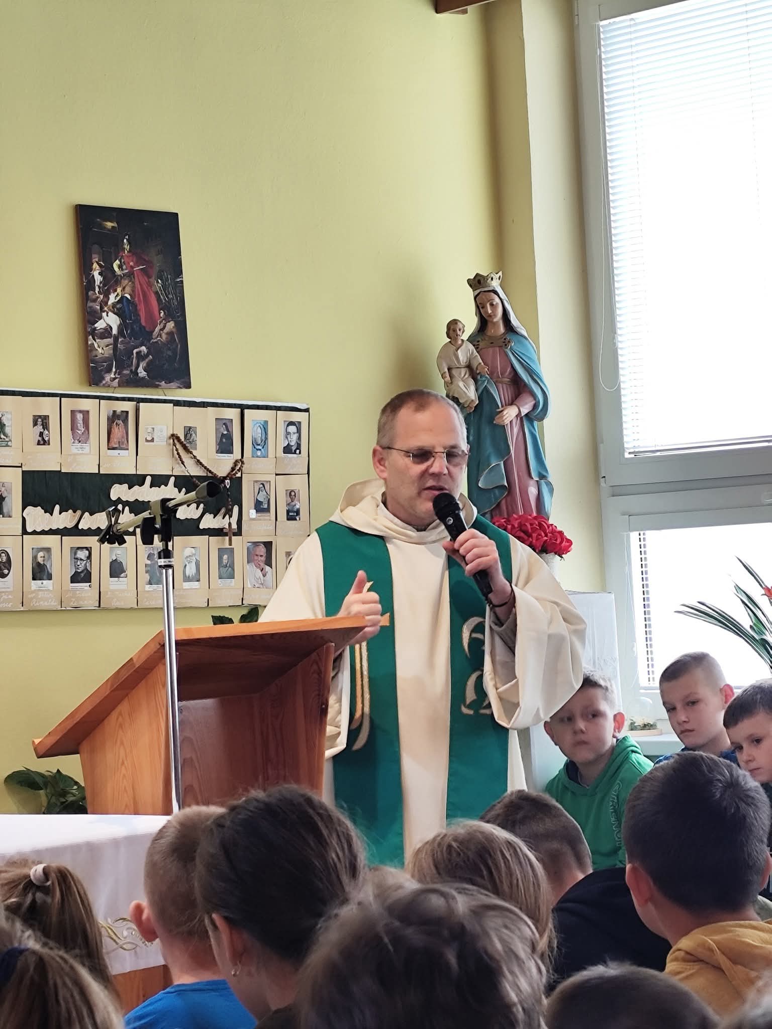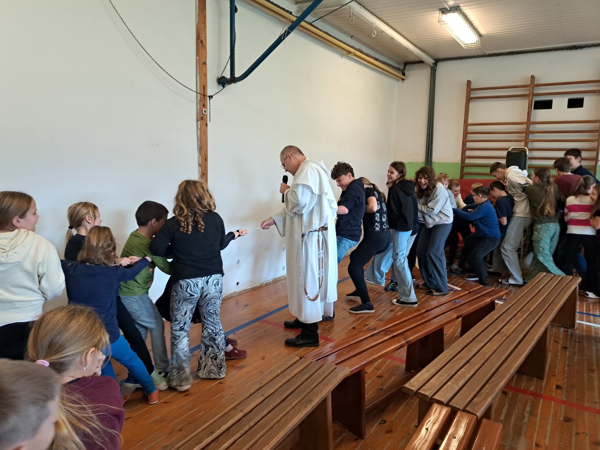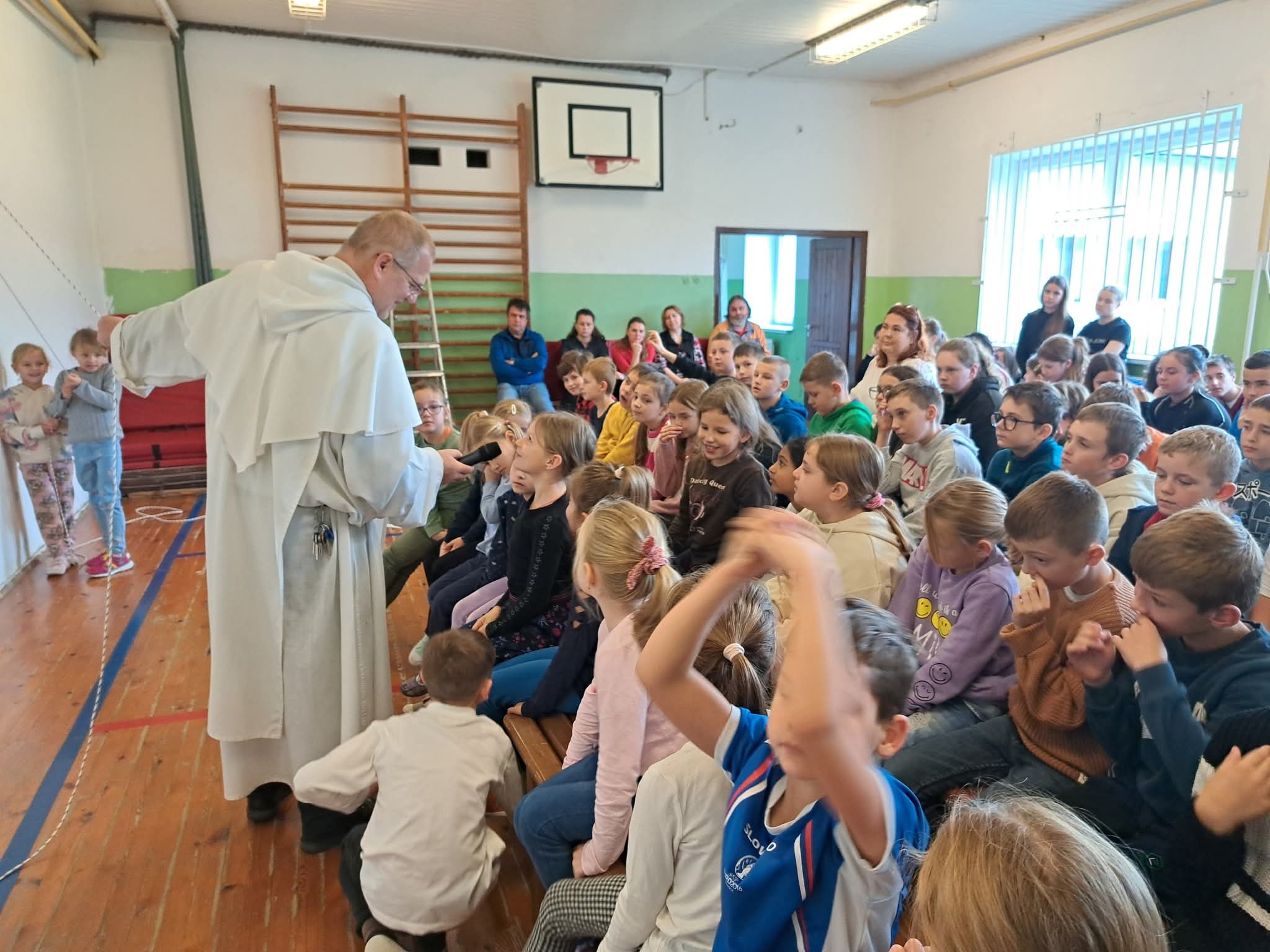 V ružencovom mesiaci október (29. októbra) medzi nás zavítal hosť – dominikánsky kňaz, páter Matej Š., OP. Prišiel nám porozprávať o modlitbe a jej dôležitosti v každodennom živote. Svoje rozprávanie obohatil pôsobivým príkladom s lanom, na ktorom deťom ukázal, že modlitba je ako pevné spojenie medzi človekom a Bohom – čím je pevnejšia a úprimnejšia, tým lepšie unesie všetky ťažkosti.
