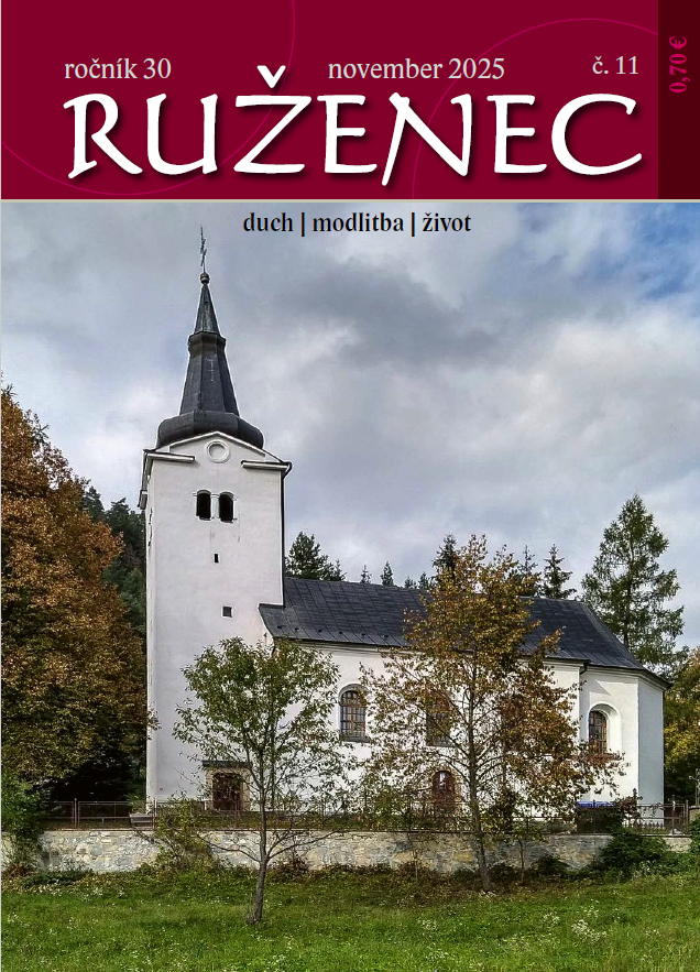 Držať ruženec v ruke, prechádzať po jednotlivých zrnkách a rozjímať nad tajomstvami života Ježiša Krista a jeho Matky — to je chvíľa, ktorú pozná každý, kto sa modlí túto starobylú modlitbu. Ruženec prináša pokoj, nádej a pocit duchovnej blízkosti. Je tichým, no spoľahlivým nástrojom na cestách každodenného života veriaceho kresťana. (str. 5)